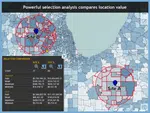 Wählen, analysieren, aggregieren und vergleichen Sie Bereiche Ihrer geografischen Daten mit den Werkzeugen Polygon, Distanzradius und Linienpuffer.
