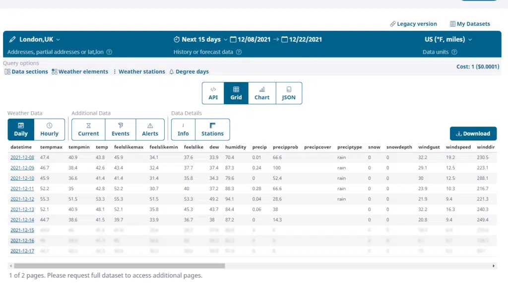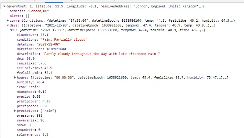 unitGroup – the unitGroup tells the API what units to return weather data in – US or metric.