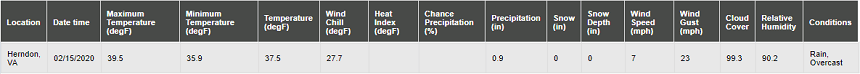 For the sake of practical comparison here is a weather forecast screenshot taken from the Visual Crossing Weather Data Query page.
