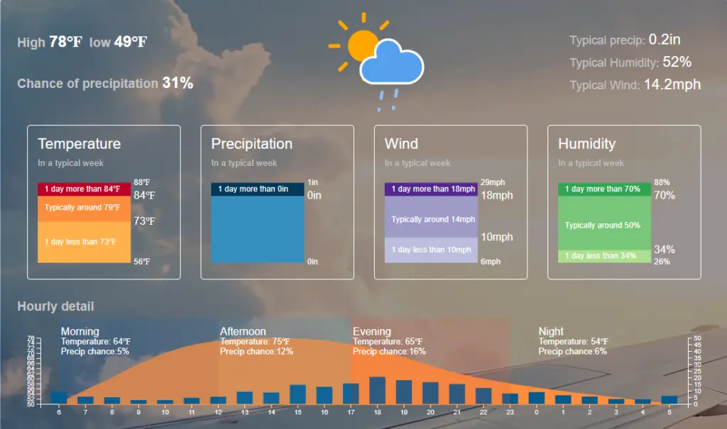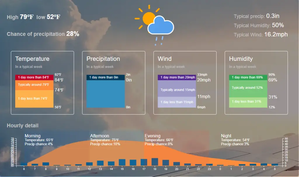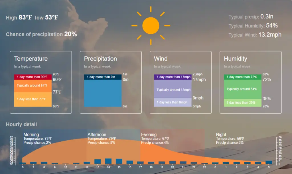 We can use historical weather data to help identify the kind of weather we’re likely to experience on our trip have so we can be prepared from clothing to deciding whether to bring our tents or rely on the RV. These historical weather trends are freely available on the Visual Crossing Average Weather Dashboard.