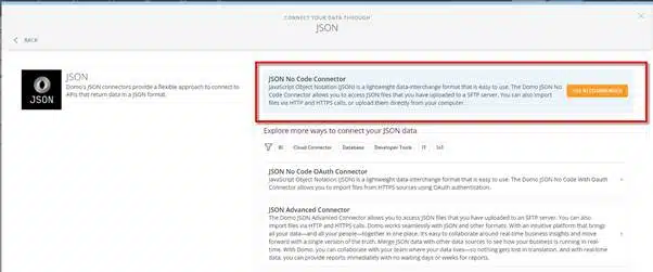 - Data Selection (Parsing): * Domo will attempt to “flatten” the JSON.