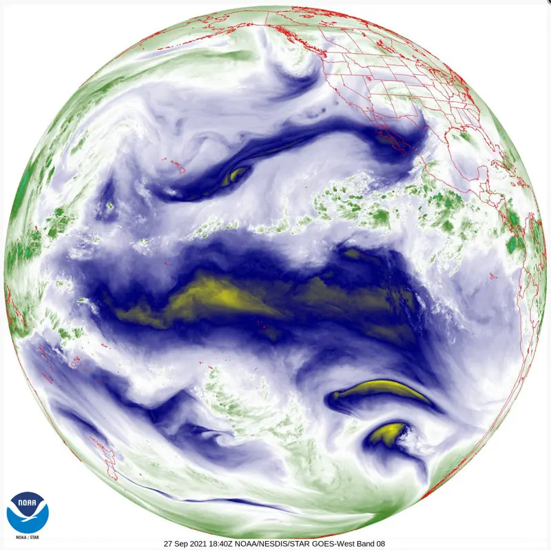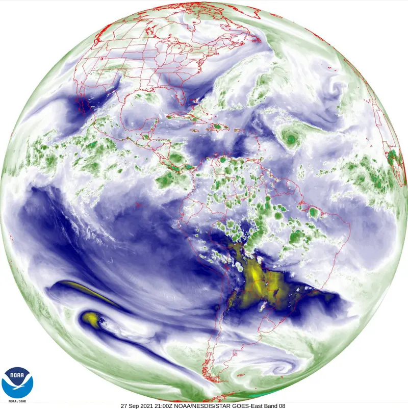 Some weather stations, such as the GOES satellites are considered ‘geo stationary’. These satellites are always located above the same location in the world (they orbit the earth at the same rotational speed as the earth is spinning). They cannot see all over the earth but they are able to provide a continuous picture of the same location. In the case of the GOES satellites, one is focused on the Pacific Ocean and Western United States and another is focused on the Atlantic Ocean and Eastern United States