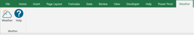 Clicking and installing the add-in will add a Weather entry to your Excel menu bar. Clicking on the Weather menu option will show the options below.