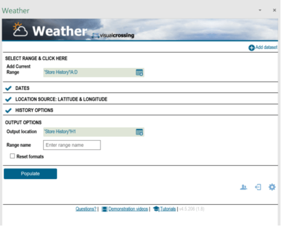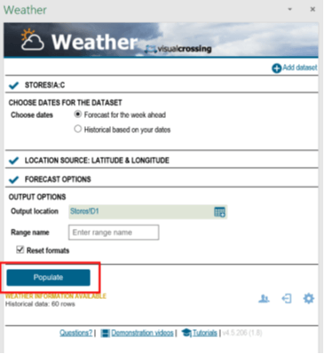You can now press the Populate button at the bottom of the Weather panel
