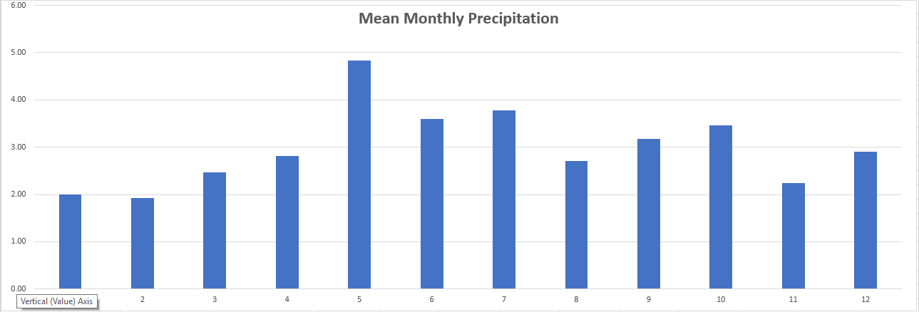 Finally, we can summarize this information into our executive summary section by indicating the expected rainfall per week during the growing season the mean annual rainfall: