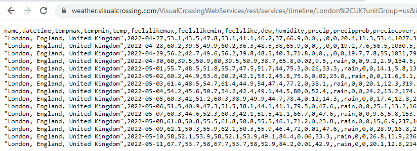 To be able to import live weather data into Power BI we will need to copy the Weather API query. For this we will need to create a free account so we have an API key. For full details on creating queries within the query builder and signing up for an API key, please see our full article on how can I download weather data as a csv file.