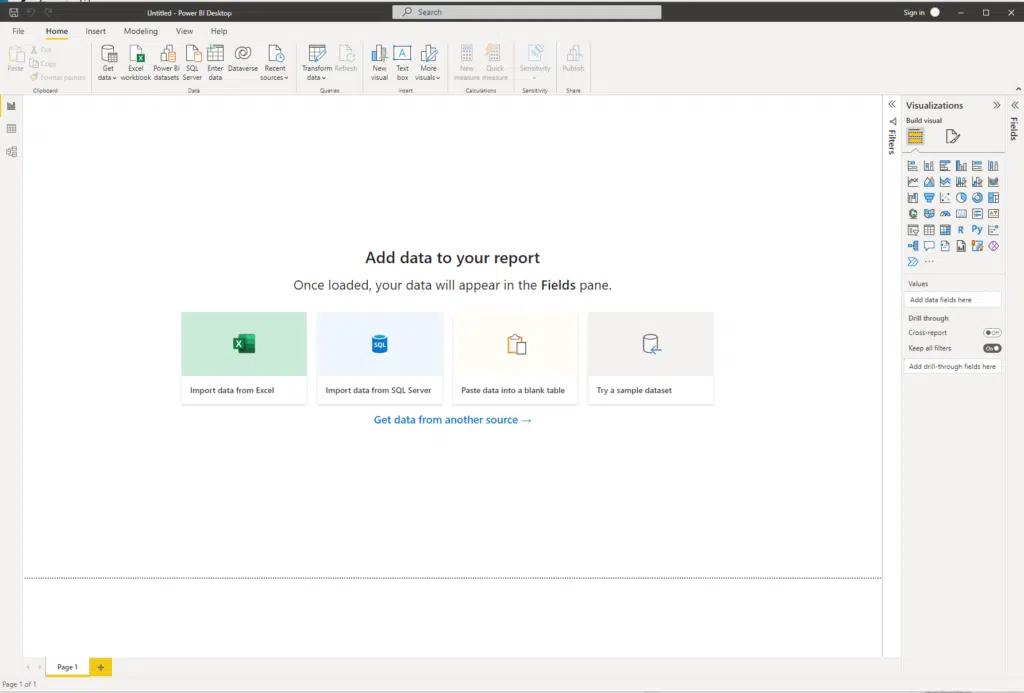 When we start Power BI, we are presented with a blank document.