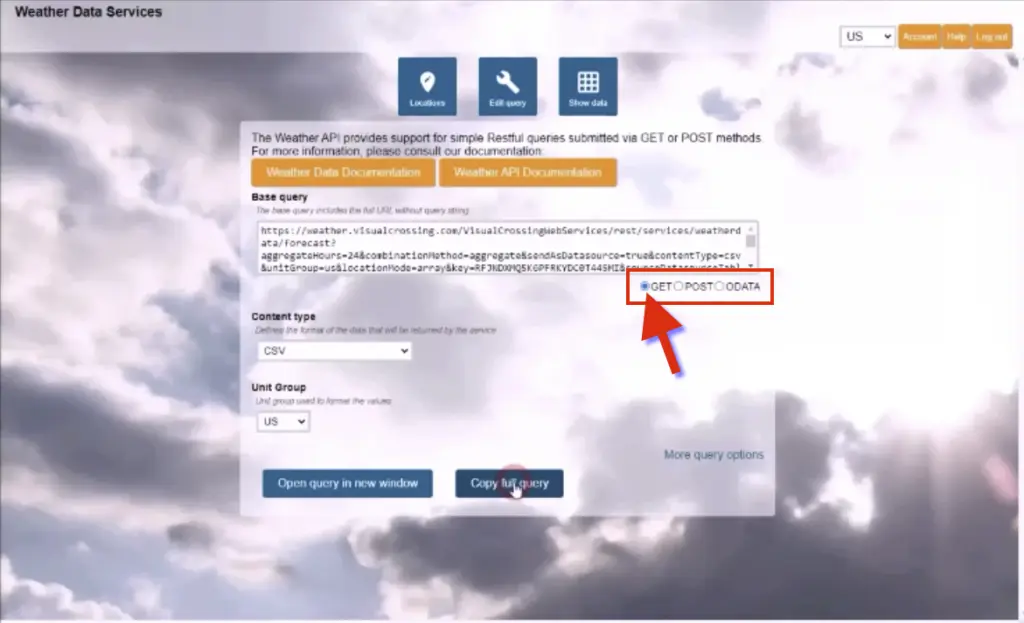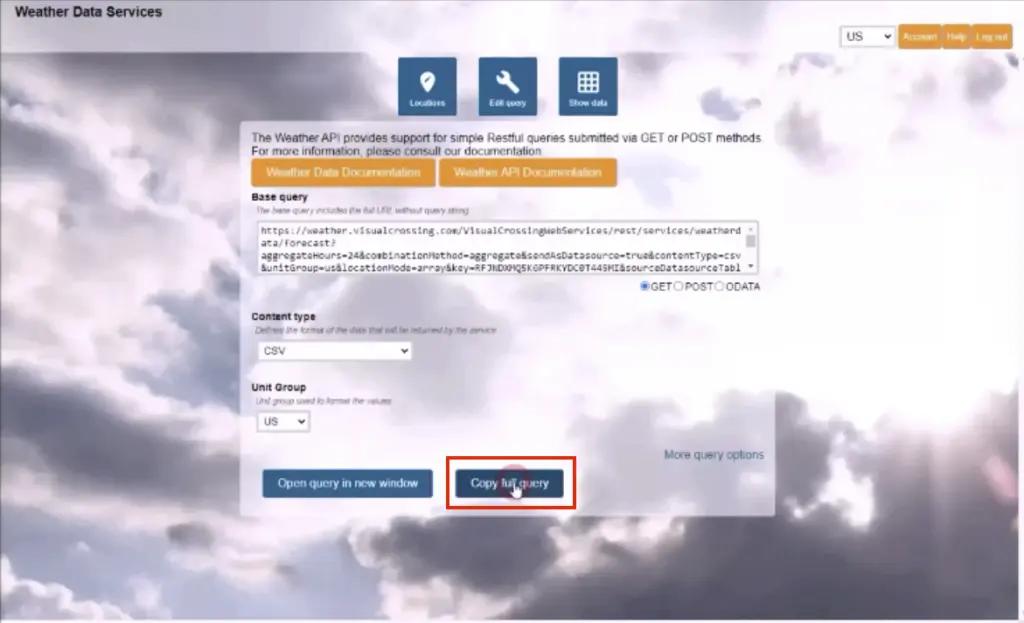 To automatically generate a query string for your locations click the ‘Query API’ button