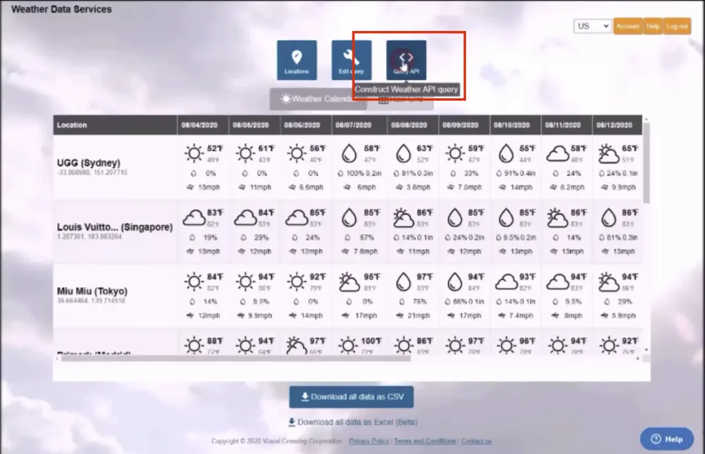 Step 1 – open Visual Crossing Weather Data Services