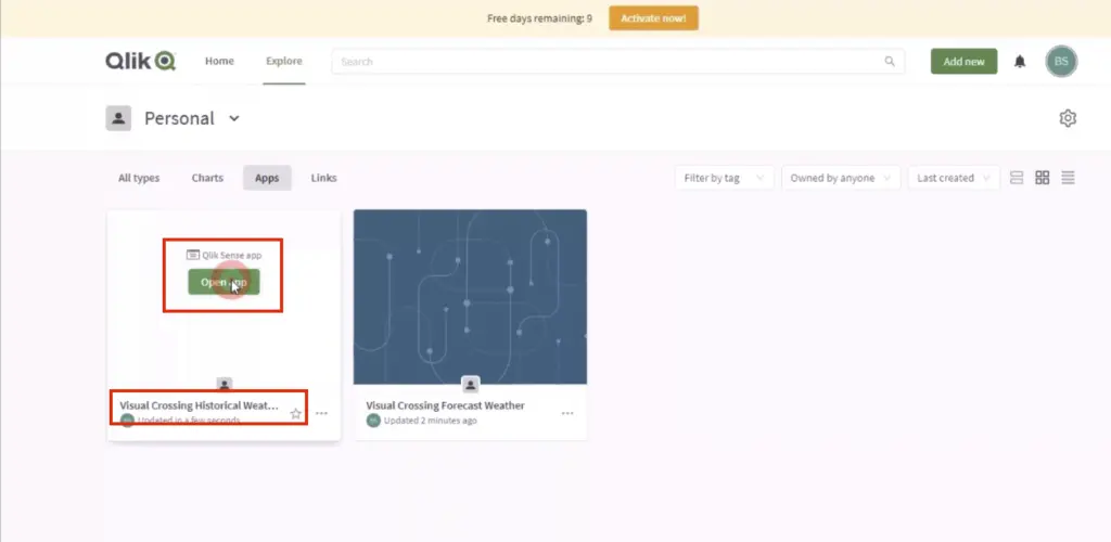 Step 9 – Log in to your Qlik Sense Hub and open an app