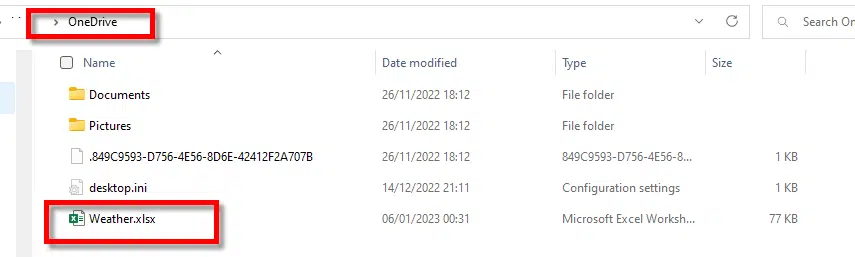 Step 2 – Copy your Excel Sheet to your OneDrive folder