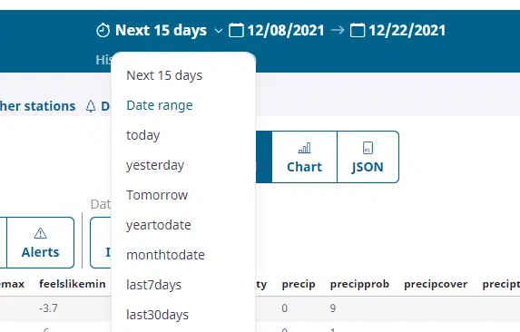 Step 4 – choose the weather data time range