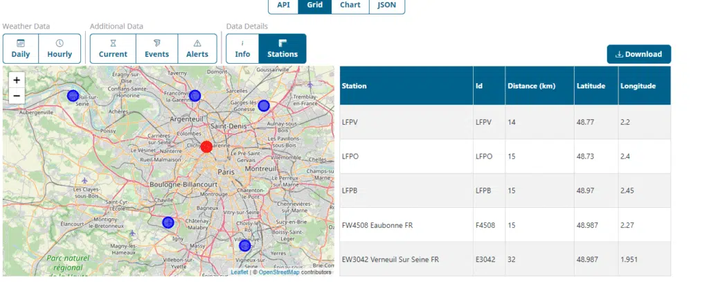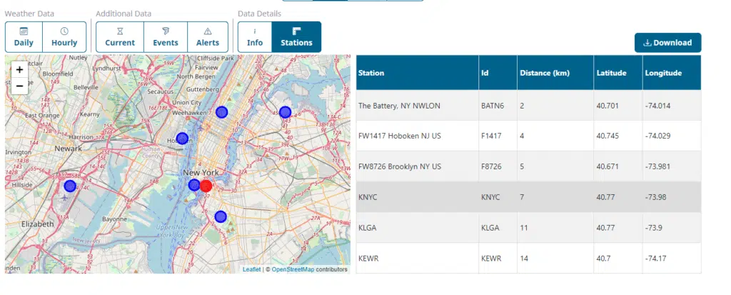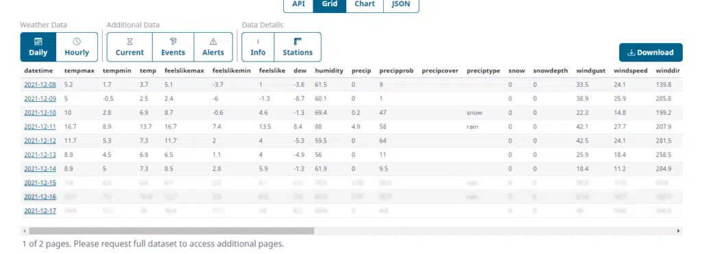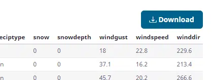 To download the weather data into Microsoft Excel, we can use the Download button: