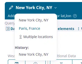 As soon as we enter the location information, the 15-day weather forecast is shown on the grid. However, in this panel there are other options as well including weather history queries, and hourly data. These are among the many options covered by our other tutorials and videos. Please take a look at those or reach out to us if you need more information on these options.