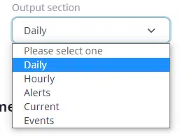 In addition to the default daily data, various additional data views are available. These include grids showing the hourly data. Also, for weather forecast queries, additional tables may be populated including any active weather alerts for the selected location.
