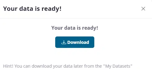 You can also use the ‘My datasets’ link in the top right of the page to retrieve the data at a later date. This is useful if you don’t want to download the dataset at the moment or if you want to down load it again.