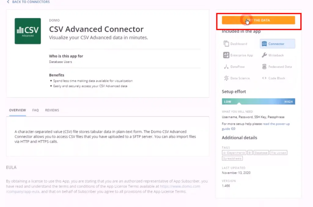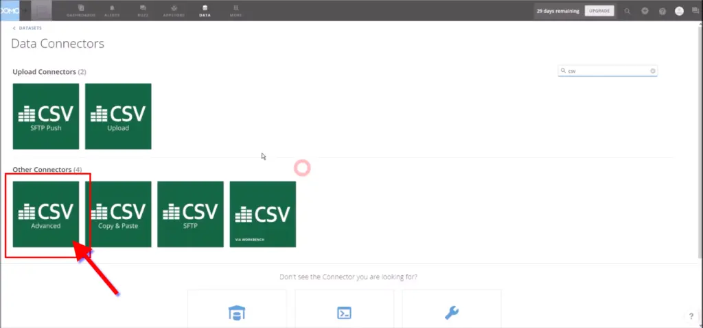 This will open the ‘Data connectors’ panel. Select the ‘CSV Advanced’ connector,