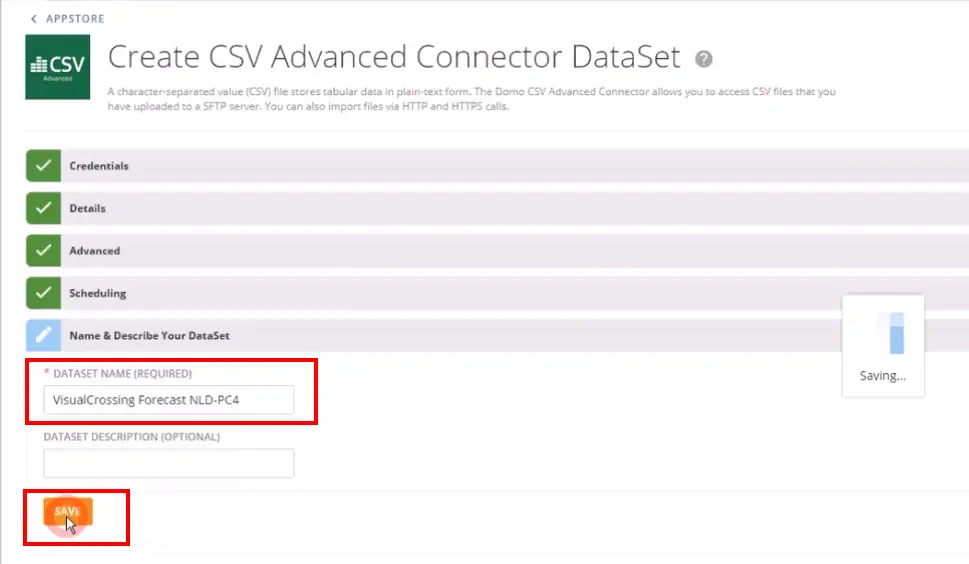 Finally name your data set and hit the ‘Save’ button.