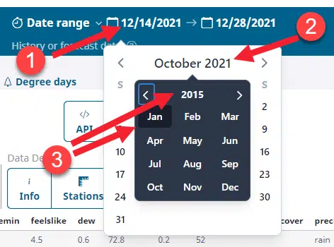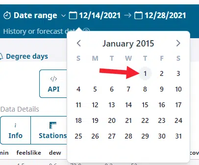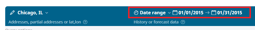 - Date Range – Any pair of start and end dates will retrieve the weather for that location between those dates.