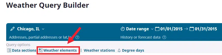 For step 4 we will click on “Weather Elements” to limit our weather metric result columns: