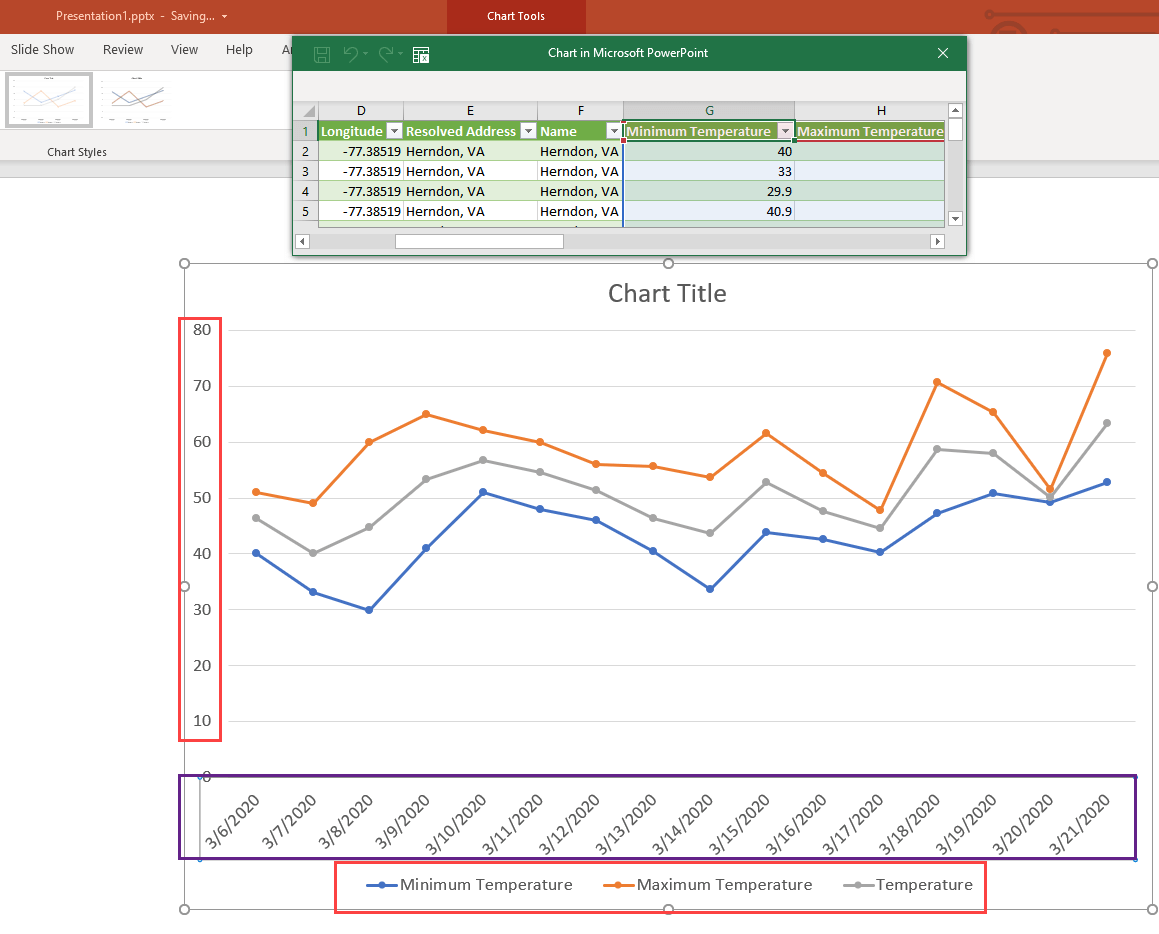 We are going to walk you through building a PowerPoint that has a graph of your current forecast. We will utilize the ability to pull Visual Crossing Weather Data directly into your PowerPoints and have them update the forecast everytime you open it.