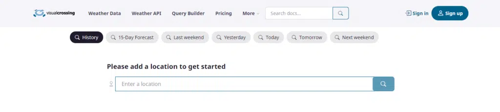 Find historical weather by searching for a city, zip code, or address. You can select a date or range of dates on the next page.