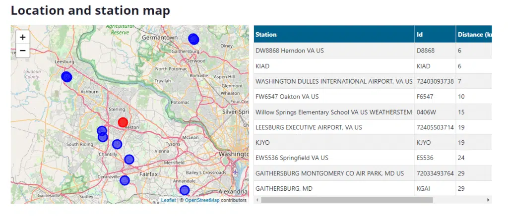 Another possible option to get weather for a specific location is to use the Visual Crossing Weather API. Once you sign up for a free account you use a Excel, Google Sheets, Business Applications or any custom coded script in virtually any language to query the same information in either CSV or JSON format.