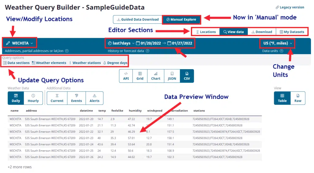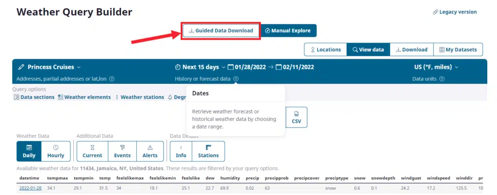 If you have ever tried to download weather data for your specific location(s), timeframe and format needs you will know that it is a challenging exercise. Most of the time the solution is for you use the API to build a script or using coding to create this set. This creates additional cost, time and maintenance to get it right. Visual Crossing as a part of its Query Builder has given users the ability to build a packaged weather dataset that can we be scheduled to update as you need and can be retrieved either through a Web URL link or simply downloaded. In this document, we will show you the details of how you can build this set for yourself. We will link to other documents that will show you how you can further load these datasets into Excel, applications, scripts, ETL tools and more.