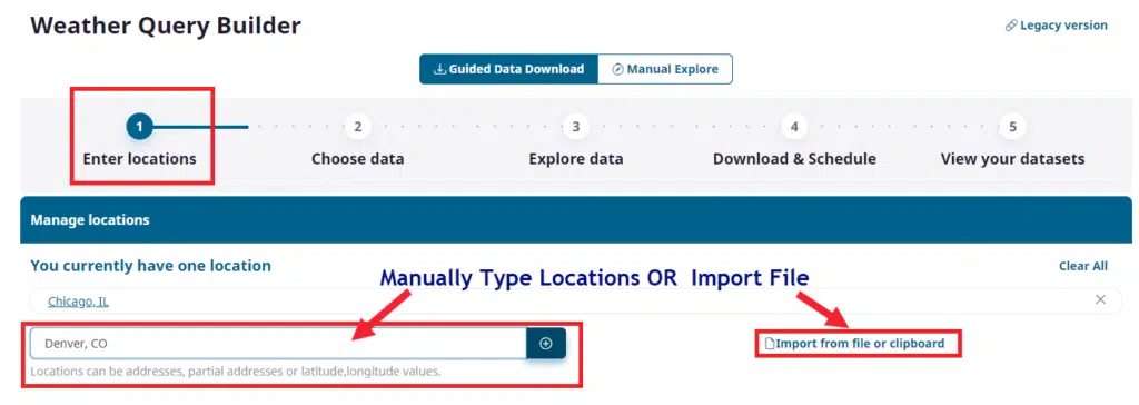 It begins in step 1 by asking you to define what locations you will be querying on.