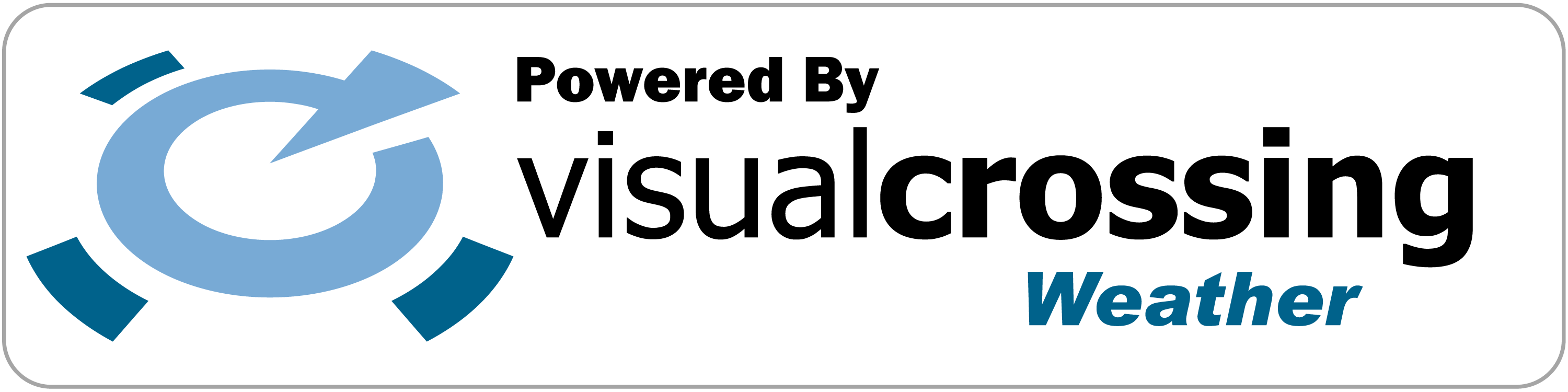 When you use Visual Crossing Weather data in any form as part of a website, app, or application, you are required to acknowledge the source of the data. The way to do that is by including either the text “Powered by Visual Crossing Weather” or using one of the icons below. This message either in text or image must be legible and placed near to the weather data on your site. Also this message must, whenever possible, open a link to https://dev.visualcrossing.com when clicked, touched, or otherwise activated in the standard way in the deployment environment.