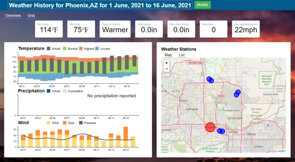 Historical weather data showing the recent heatwave in Phoenix, Arizona, USA. Source.